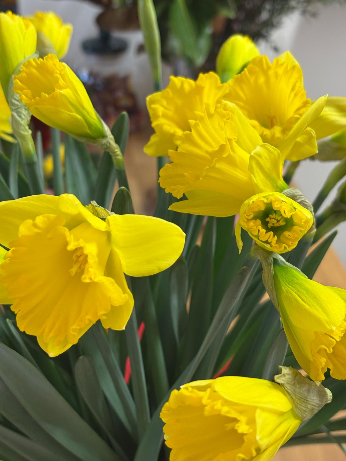 15 narcises sasietas ar lentu.