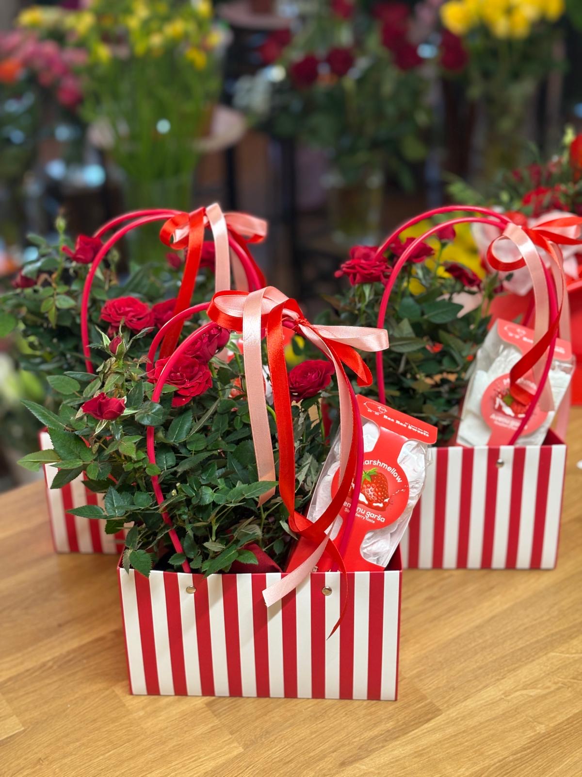 Rozes podiņš un karameļu darbnīcas maršmeloniem. Attēlam ir ilustratīva nozīme, ziedu krāsa un iepakojums var atšķirties no attēlā redzamā.
