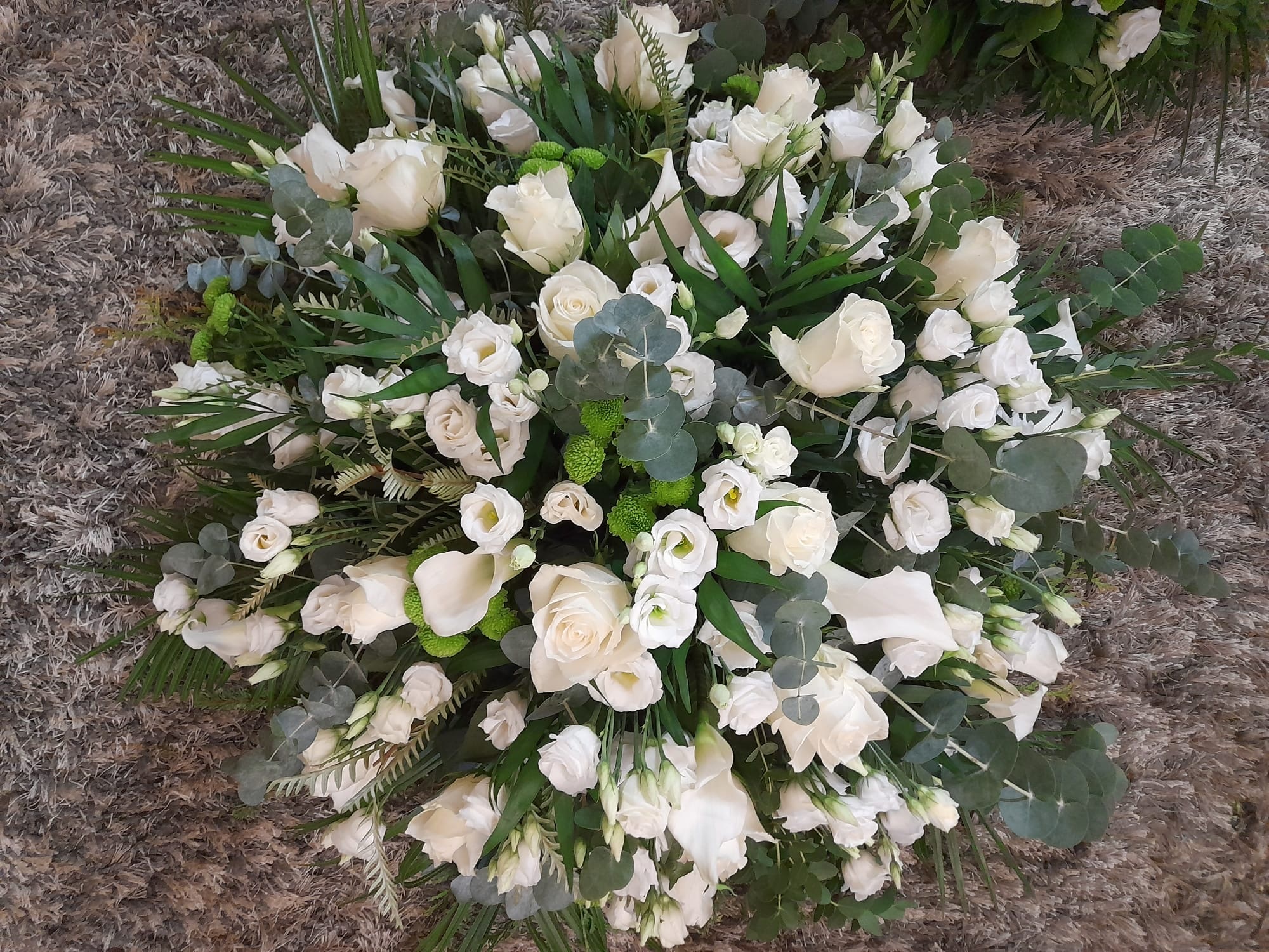 Apmēram 90 cm diametrā. Attēlam ir ilustratīva nozīme. Ziedu klāsts kompozīcijā var atšķirties.